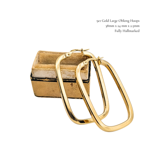 9ct Gold Large Oblong Hoops, 38x24mm, Hallmarked