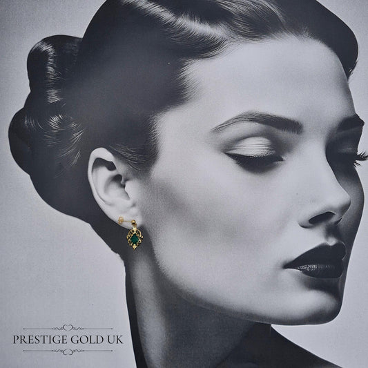 Vintage 9ct Gold Emerald Drop Earrings