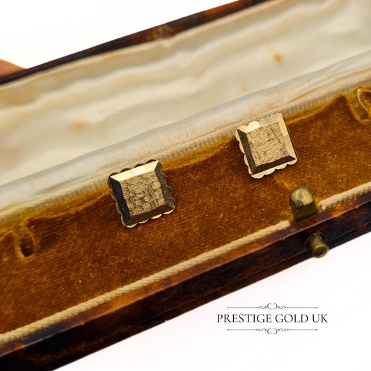 Vintage 9ct Gold Square Stud Earrings - 9mm