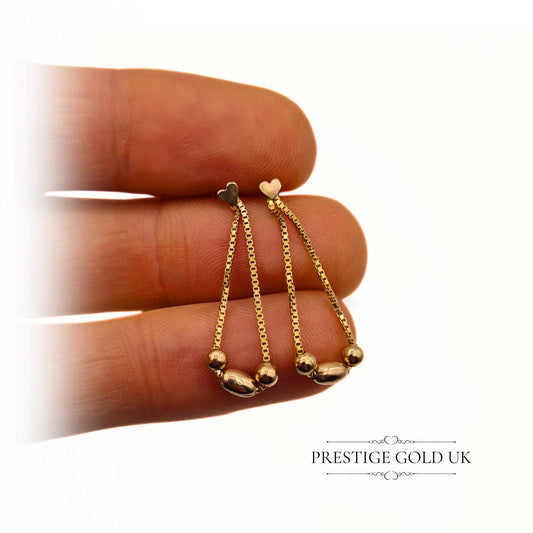 Vintage 9ct Gold Box Chain & Bead Tassel Drop Earrings