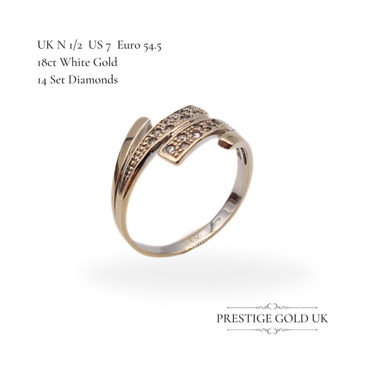 Vintage 18ct White Gold Crossover Diamond Ring, UK N 1/2 US 7 Euro 54.5