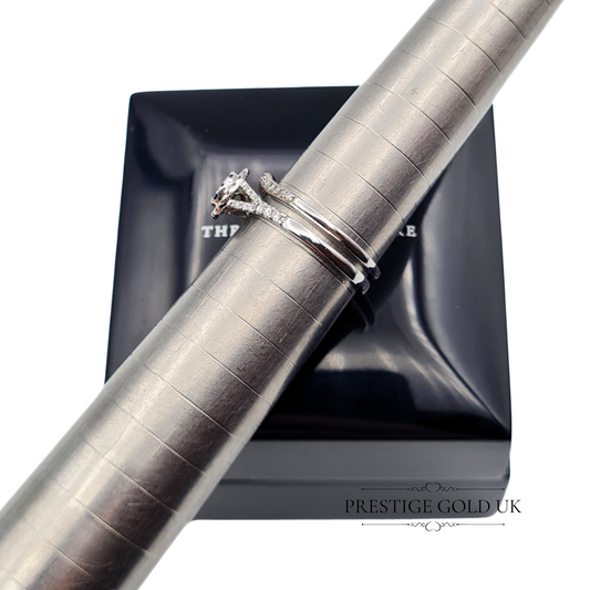 18ct White Gold Sapphire and Diamond Halo Engagement Ring & Wedding Band Set