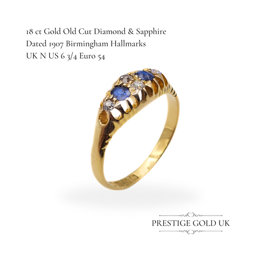 Antique 18ct Gold Sapphire and Old Cut Diamond Ring - UK N US 6 3/4 Euro 54