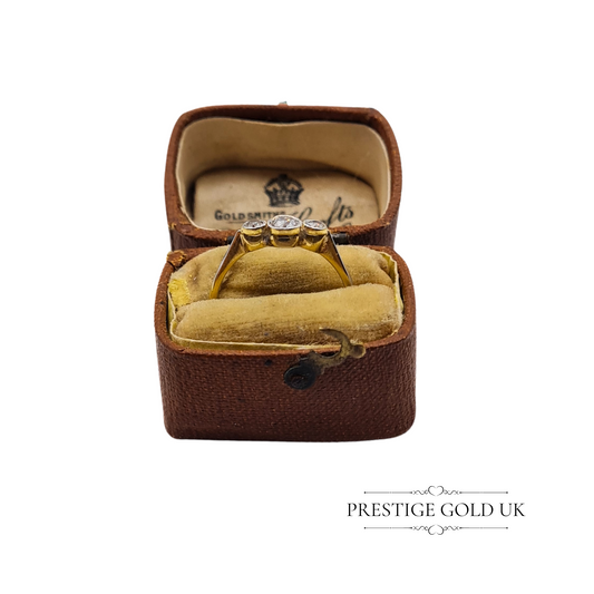 18ct Gold Old Cut Diamond Trilogy Ring, UK Q 1/2, US 8 1/4