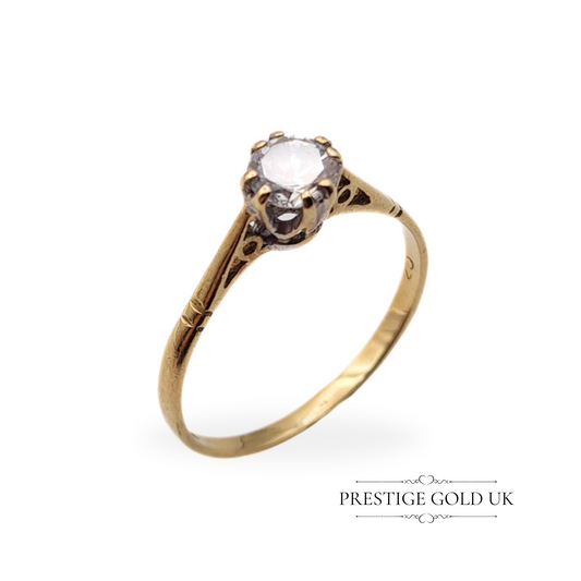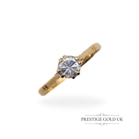Vintage 9ct Gold CZ Solitaire Ring - Size UK O 1/2 US 7 1/2 Euro 56