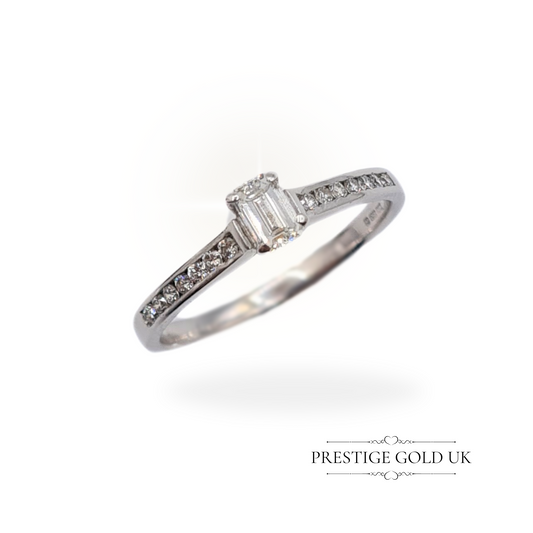 18ct White Gold Baguette Cut Diamond Engagement Ring - UK L US 5 3/4 Euro 51