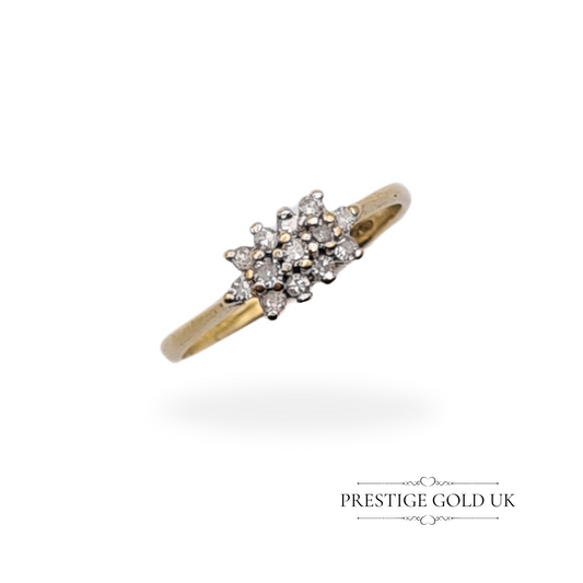 Vintage 9ct Gold Diamond Cluster Ring - Size UK I 1/2 US 4 3/4 Euro 48,