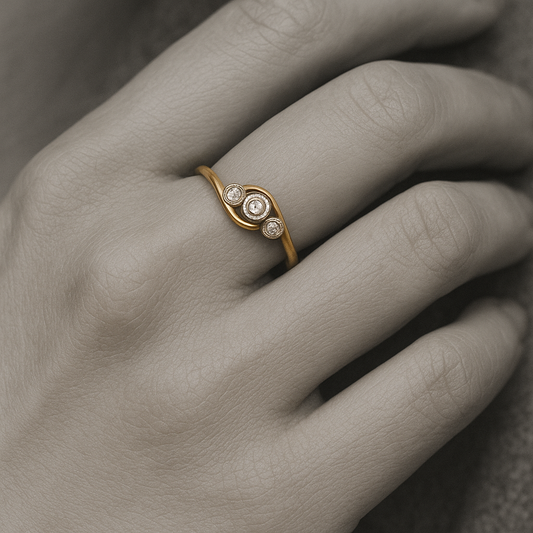 Old Cut 18ct Gold & 3 Stone Diamond Ring - Size UK P, US 7 1/2, Euro 56