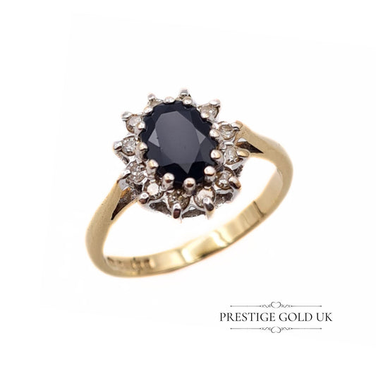 Vintage 9ct Gold Oval Sapphire & Diamond Ring - Size UK K 1/2, US 5 3/4, Euro 51