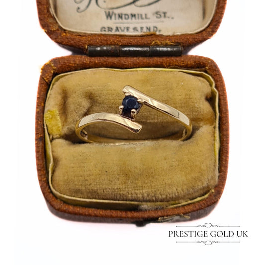 Vintage Dainty Gold & Sapphire Crossover Ring - Size UK N, US 6 3/4, Euro 54