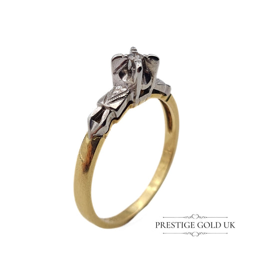 Vintage 9ct White & Yellow Gold Diamond Ring - Size UK N, US 6.75, Euro 53.5