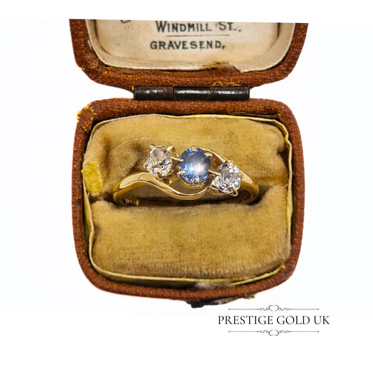 Vintage 18ct Gold Sapphire & Diamond Ring - Size UK I, US 4 1/4, Euro 47.5