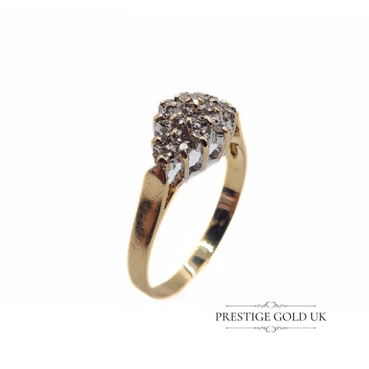 Vintage 10ct Gold Diamond Cluster Ring - Size UK L, US 5 3/4, Euro 51.5