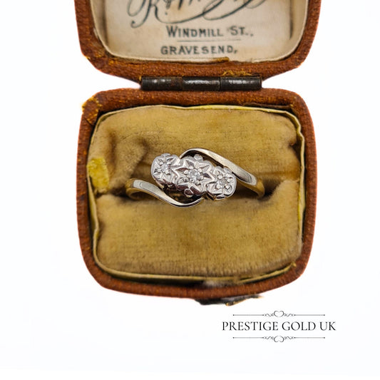 18ct Gold & Platinum Trilogy Diamond Ring, UK O 1/2 US 7 1/2 Euro 56