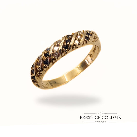 Vintage 14k Gold Sapphire & Diamond Twist Ring - Size UK P, US 7 1/2, Euro 56
