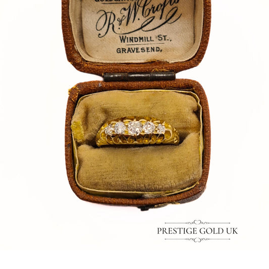 Antique 18ct Gold & Diamond Boat Ring - Size UK L 1/2 US 6 Euro 52