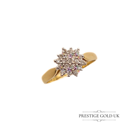 Vintage 18ct Gold Diamond Cluster Ring - Size UK P, US 7 3/4, Euro 56