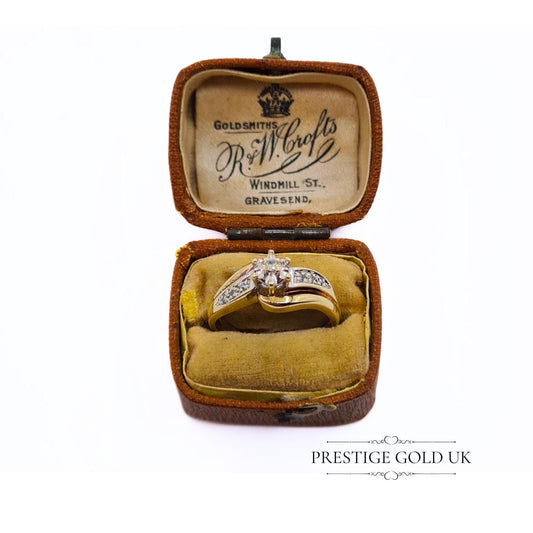 Vintage 18ct Gold & Platinum Diamond Crossover Ring - UK N 1/2, US 7, Euro 54
