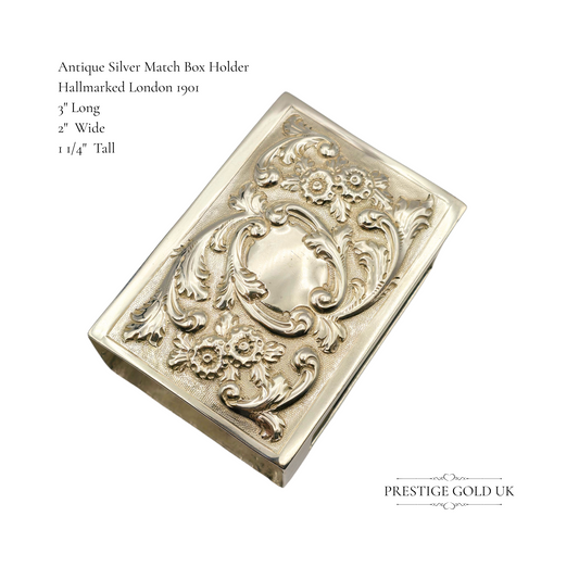 Antique Solid Silver Matchbox Holder, London 1901, Rococo Floral Design, 3” x 2”