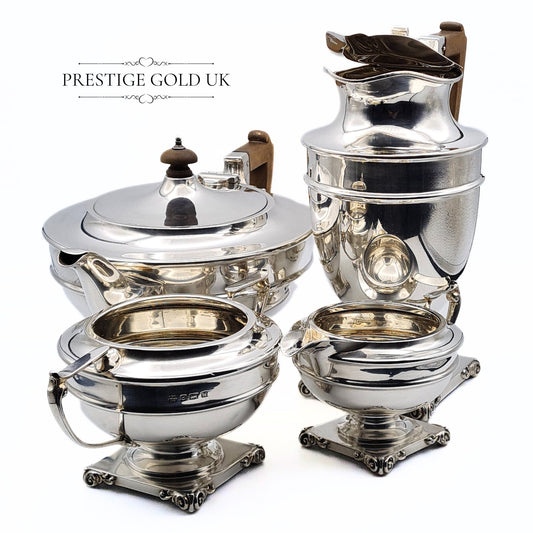 1920s Solid Silver Tea & Coffee Set, Milk Jug & Sugar Bowl - British Hallmarks