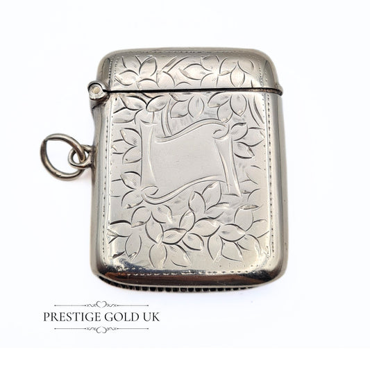 Antique Gents' Engraved Silver Match Holder/Vesta