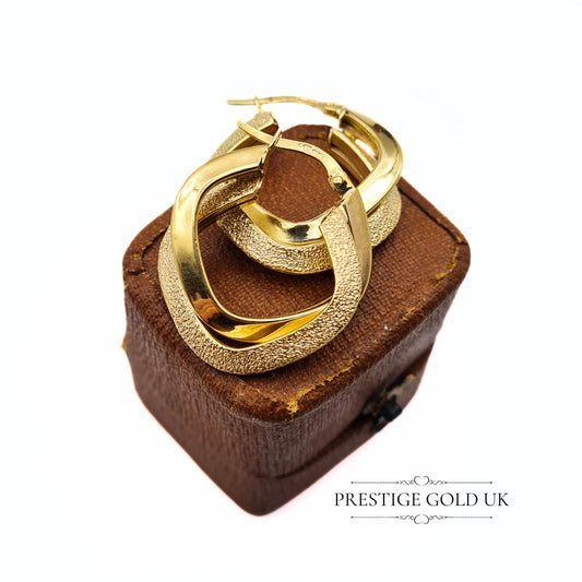 Vintage 9ct Gold Patterned, Angular Hoop Earrings