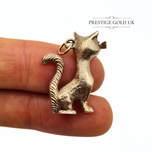 Vintage Heavy 9ct Gold Cat Pendant / Charm