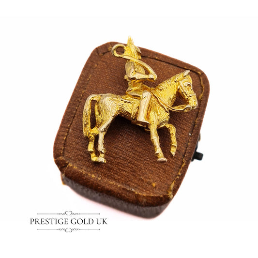 Vintage 9ct Solid Gold Cavalry Soldier & Horse Charm