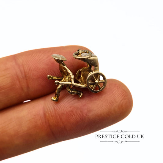 Vintage 9ct Gold Moving Rickshaw Charm