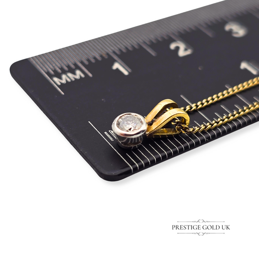 18ct Gold Diamond Pendant 17" Long Curb Chain Necklace, London Hallmark