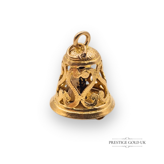 Large 9ct Gold Opening Wedding Bell Charm With Bride & Groom