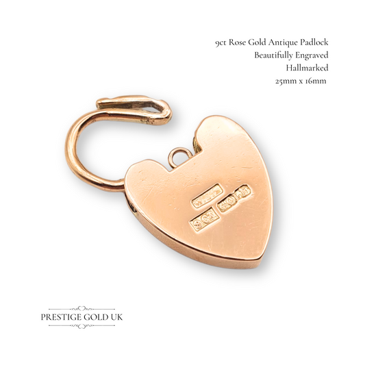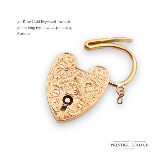 Huge Antique 9ct Rose Gold Hand Engraved Heart Padlock Charm Or Pendant