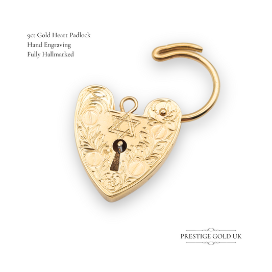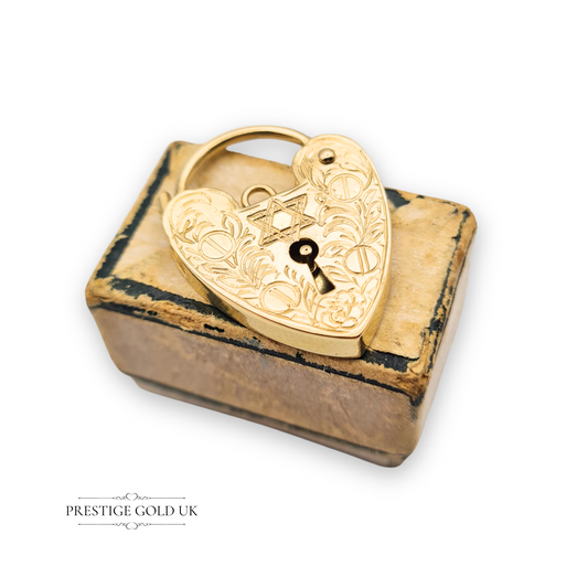 Large 9ct Gold Vintage Heart Padlock, With Hand Engraved Star of David