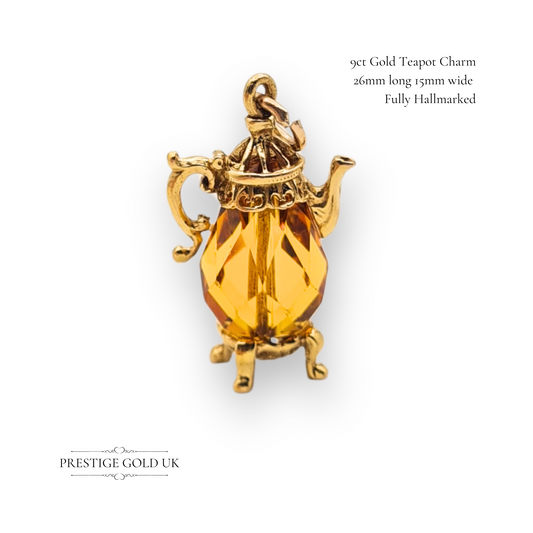 9ct Gold Vintage Teapot Coffee Pot Charm With Orange Faceted Crystal