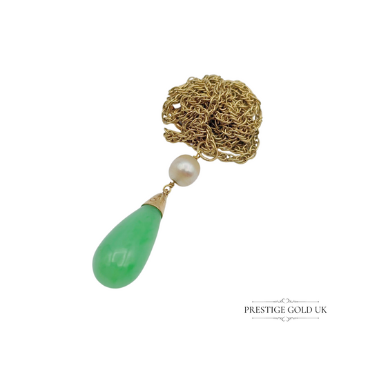 Vintage 9ct Gold Jadeite & Pearl Pendant Necklace - 18" Chain