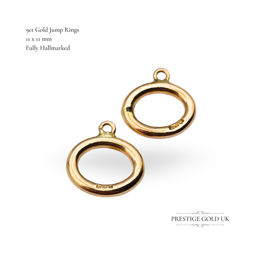 9ct Gold Jump Ring Pair with Safety Chain Loops, Fully Hallmarked, 11mm x 11mm