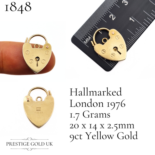 Vintage 9ct Gold Heart Padlock Charm, London Hallmarked 1976