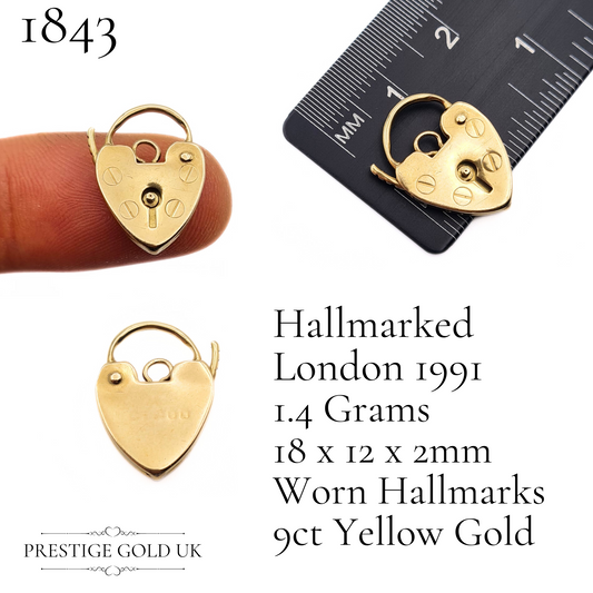 Vintage 9ct Yellow Gold Heart Padlock Charm, Hallmarked London 1991