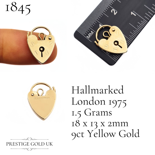 Vintage 9ct Yellow Gold Heart Padlock Charm, Fully Hallmarked London 1975,