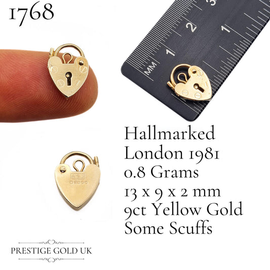 Vintage Small Gold Heart Padlock Pendants 9ct - Multiple Sizes