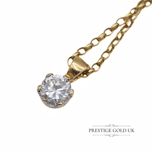 Vintage Gold Rolo Chain Necklace & Cubic Zirconia Pendant - 21"