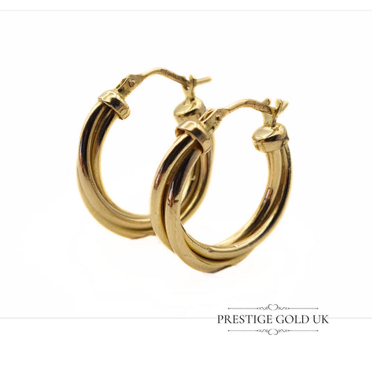 Vintage Triple Twist Hoop Earrings - 9ct Gold, 19mm