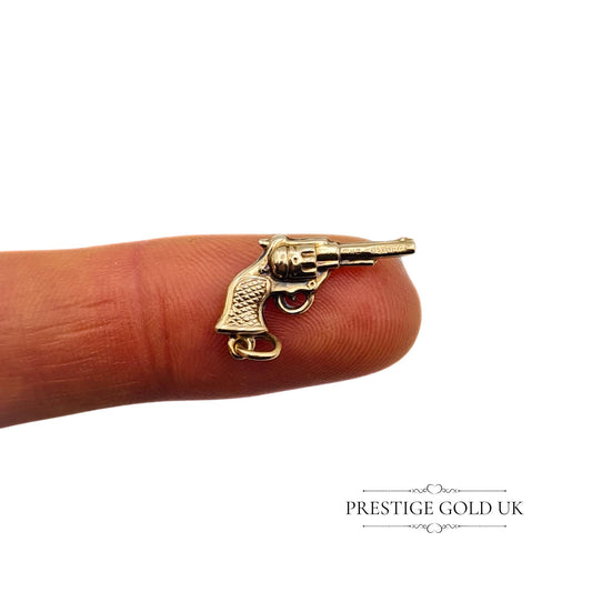 Vintage 9ct Gold Small Revolver Hand Gun Charm