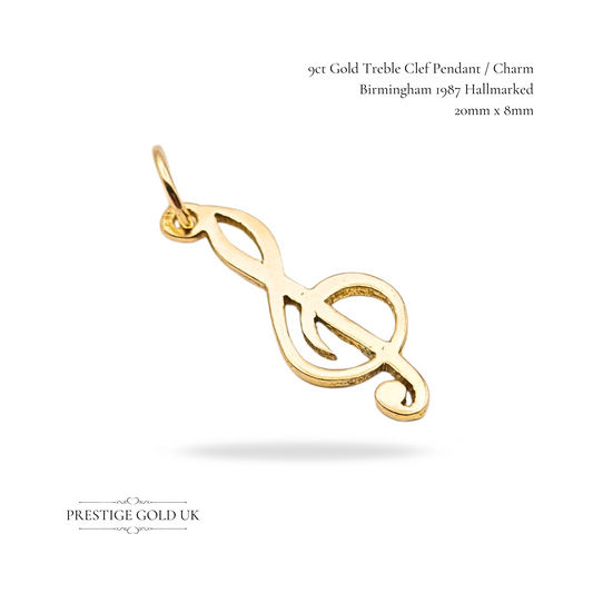 9ct Gold Treble Clef Pendant, Hallmarked Birmingham, Gold Vintage Music Charm
