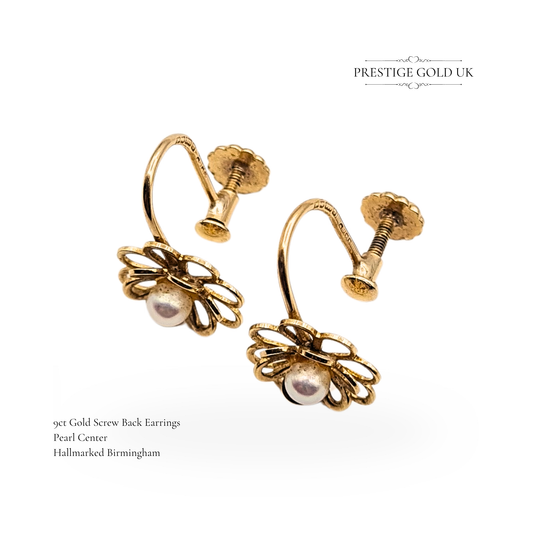 9ct Gold Screw Back Earrings, Floral Design With Pearl Centres For Non pierced ears