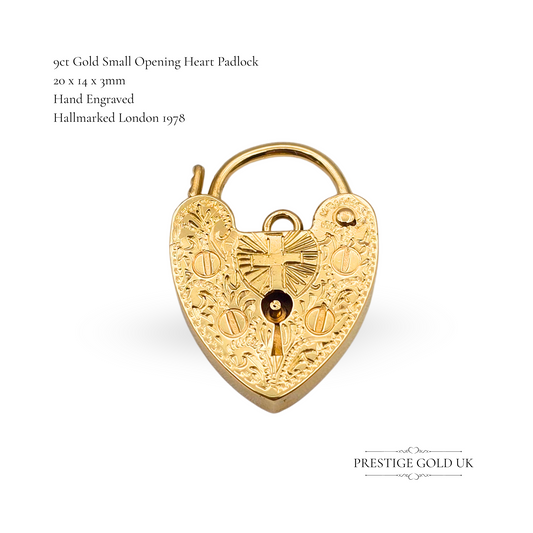 9ct Gold Heart Padlock Charm, Engraved Crucifix Cross Design Christian Symbolism
