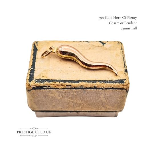 Large 9ct Gold Cornicello Pendant, Talisman Horn of Plenty Charm