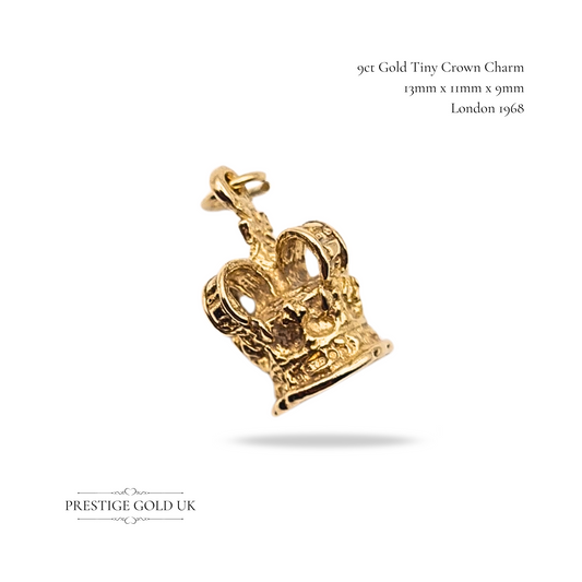 9ct Gold Crown Charm Pendant, Vintage Tiny Miniature Crown Charm for Bracelet