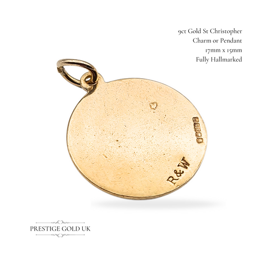 9ct Gold Round St Christopher Pendant Charm, Sheffield 1978