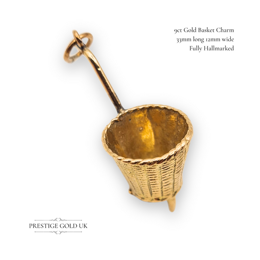 9ct Gold Wicker Basket Charm 1965, Fruit Picking Wheelbarrow Basket